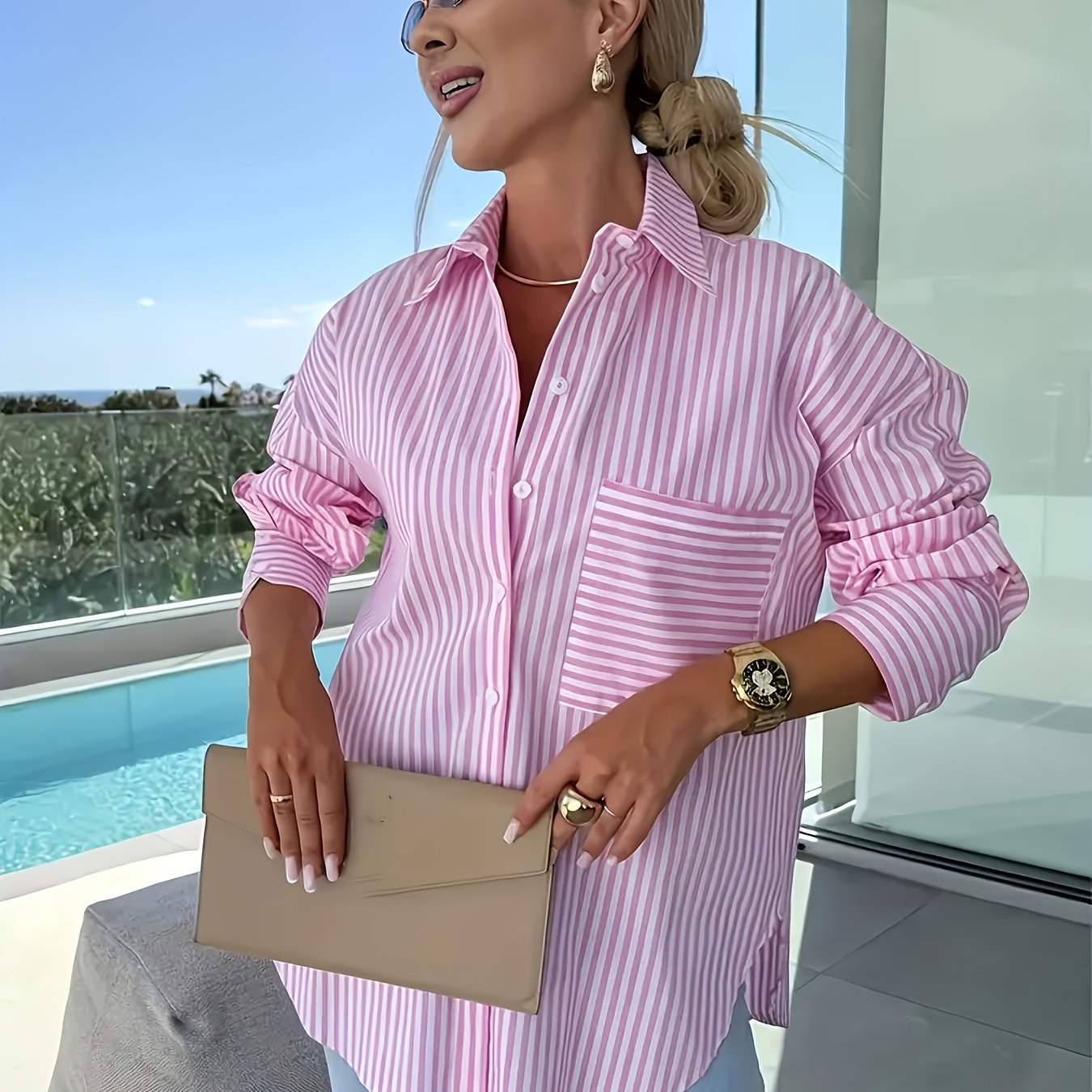 TEMU 빈티지 프렌치 프린트 셔츠, 직장 및 캐주얼 외출에 완벽, 가을 분위기에 이상적