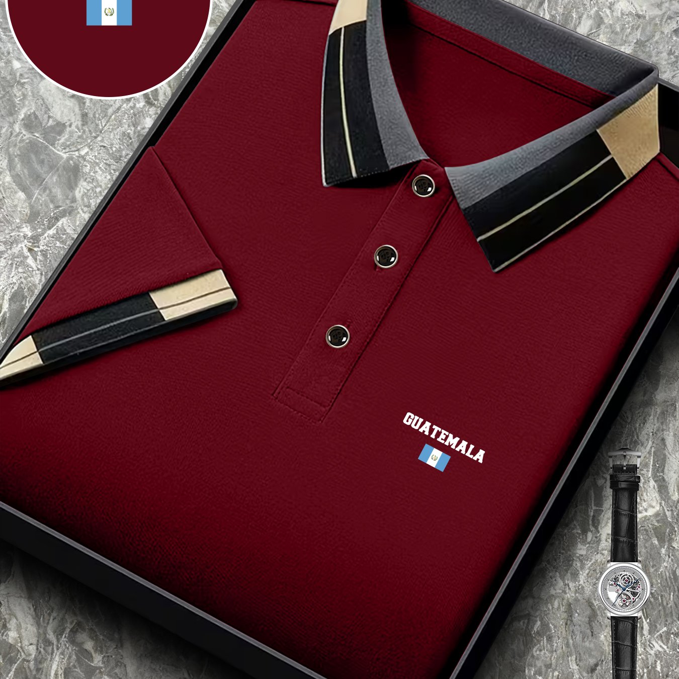 TEMU 남성용 여름 캐주얼 셔츠, 과테말라 국기 프린트, 비즈니스 캐주얼 칼라 스트레치 골프 셔츠, 부드럽고 편안한 패션 다용도