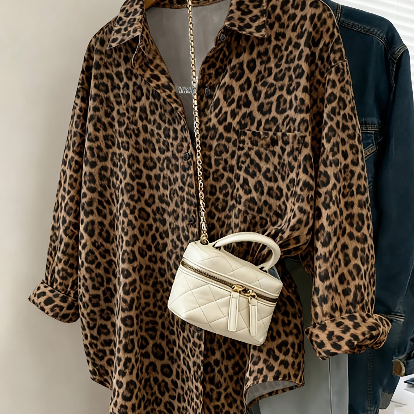 TEMU 캐주얼 루즈핏 긴팔 셔츠, 프린트 패턴, 가을/겨울에 적합, 데일리룩으로 활용하기 좋음