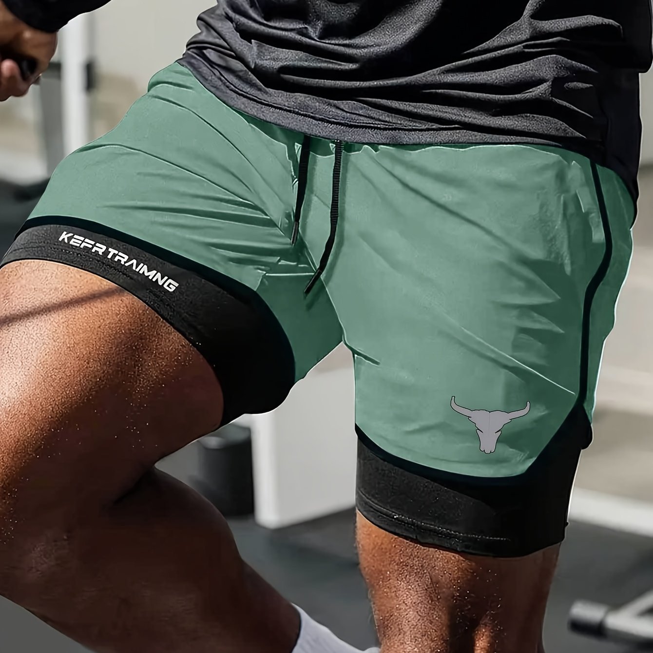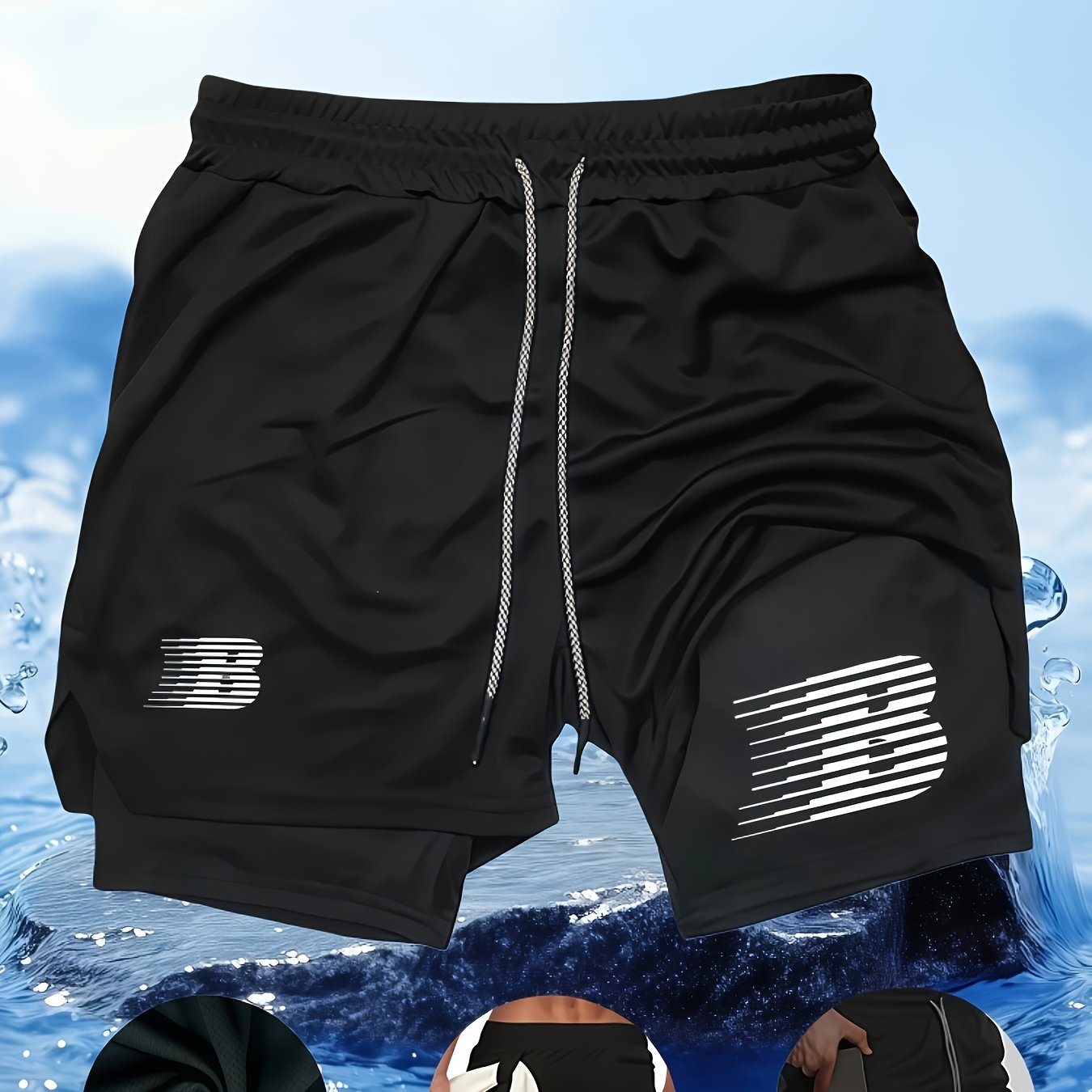 TEMU 남성용 스포티 캐주얼 이중 레이어 반바지, 속건성, 통기성, 답답하지 않음, 휴대폰 및 수건용 포켓 포함, 패셔너블한 프린트 디자인, 활용도 높은 스타일