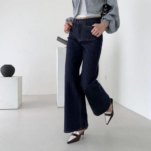 [다잇템]여자 주머니 부츠컷 와이드핏 나팔 데님 (11039297A)