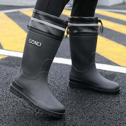 [셀럽하우스]방수 OQXZQWUR 스트링 남성 장화 반사띠 롱 레인부츠 작업화