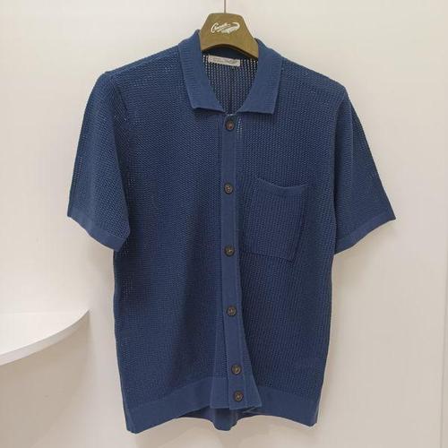여름 남자 포켓 카라 심플 반팔 니트 가디건 SG-CAH-Q083-네이비