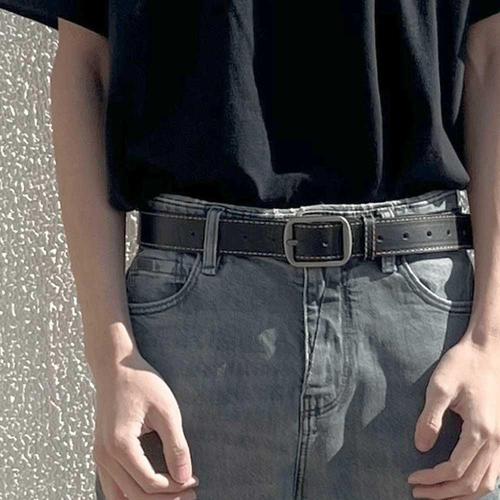 남녀 공용 청바지 코디 캐주얼 스티치 사각 버클 벨트 WFHOEWO