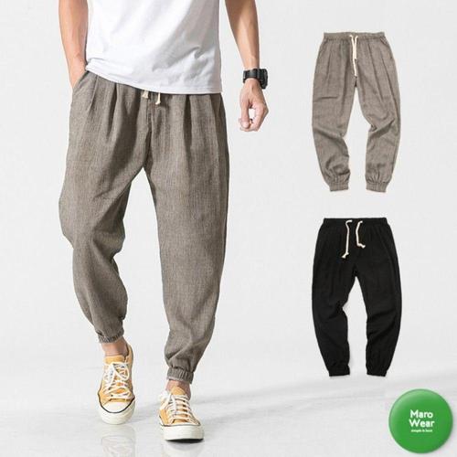 [셀러에이드]남성 여름철 시원한 린넨 소재 허리 밴딩 조거 스타일 팬츠