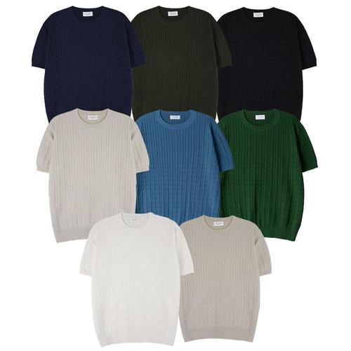 남자 쿨 린넨 케이블 라운드 반팔 니트티 AT-KNH-Q012-소라
