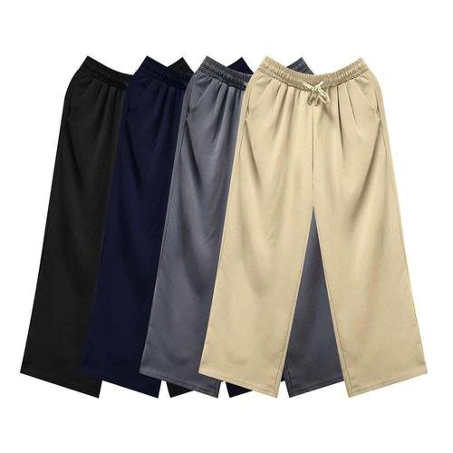 HANYO 남성용 시원한 린넨라이크 통기성 와이드 스트레이트 밴딩 팬츠 통바지