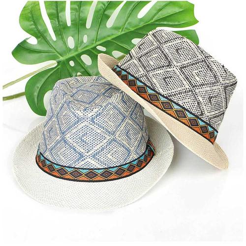 베이직엠 바캉스모자 여름 지사모자 페도라 이중 에스닉 띠라인
