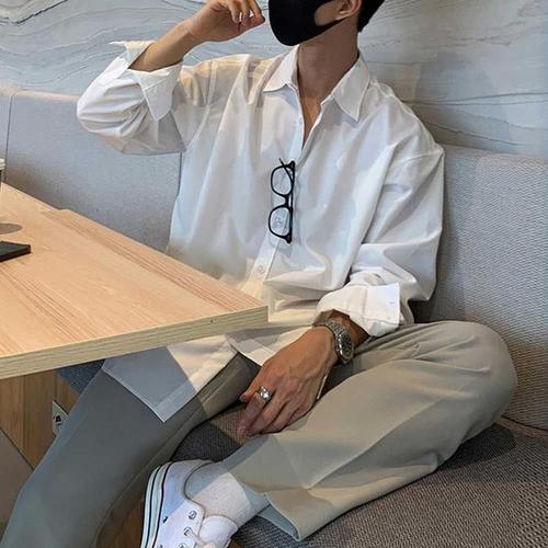 [주식회사 브이와이][JHQRJFBD_4B]남자 오버셔츠 베이직 루즈핏 출근룩 남친룩 (24037318A)