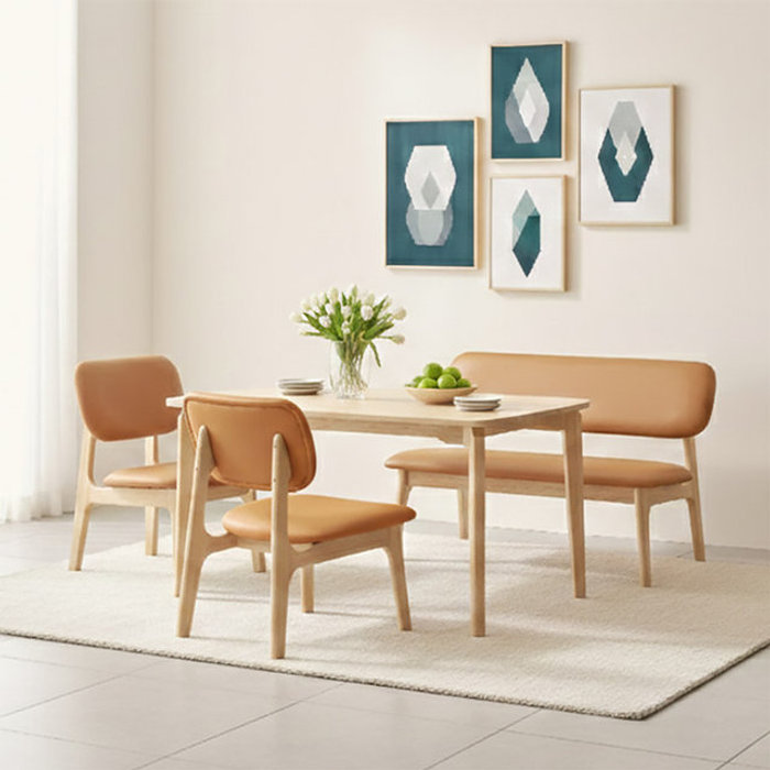 보루네오 낮은4인 원목식탁 책상테이블+의자2+벤치1 TR6044R [착불]