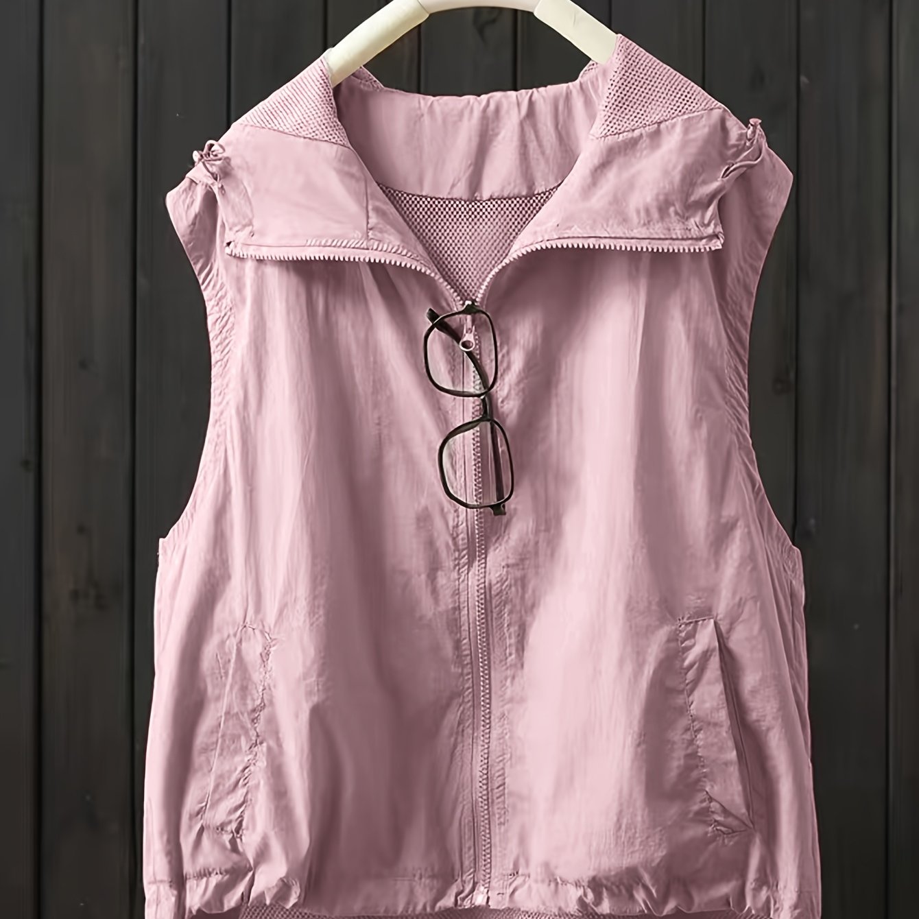 TEMU 여성용 캐주얼 가벼운 솔리드 컬러 후드 지퍼 조끼 (듀얼 포켓)