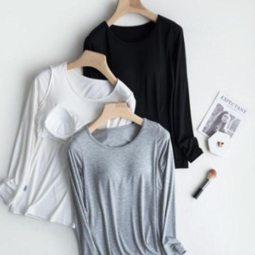 [오너클랜]인기상품 여성용 내장패드 긴팔 노브라 티셔츠 데일리 이너웨어 [WFLLM0V_260305]