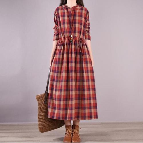 [다잇템]여자 FW 뉴트로 환절기 스트랩 롱 격자 원피스 (11617042A)