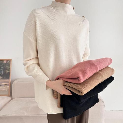 [다잇템]여자 언발 박스 터틀넥 어깨버튼 스카시 니트 (23700120A)