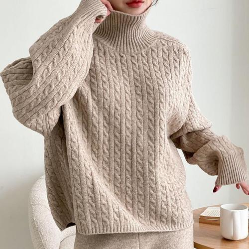 [다잇템]여자 터틀넥 꽈배기 비스코스 박스 니트 (26162919A)
