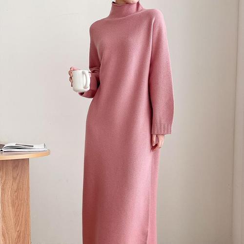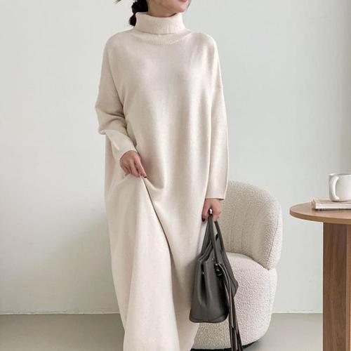 [다잇템]여자 겨울등원룩 박스 울니트 터틀넥 롱원피스 (27395428A)