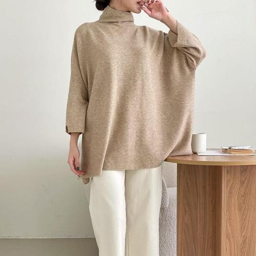 [다잇템]여성 9부 컷오프 터틀넥 언발 망토 박스핏 니트 (27983692A)