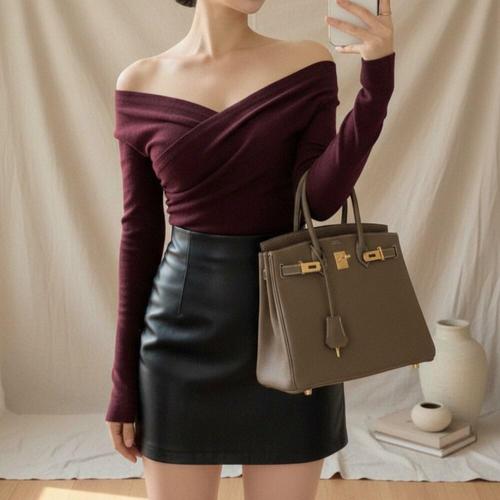 [셀럽하우스]여성 INQK6457 오프 숄더 스퀘어넥 디자인 데이트룩 긴팔 니트
