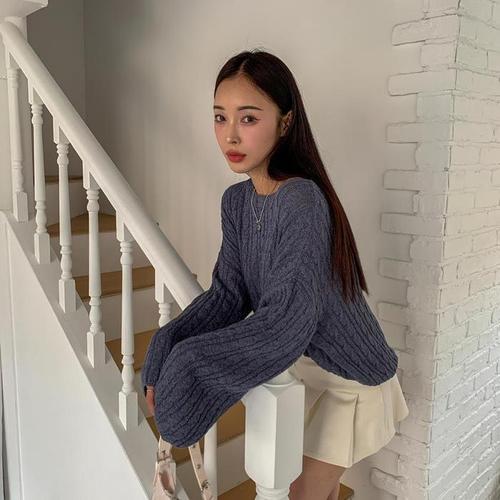 [다잇템]여자 비스코스 숄더 벌룬 U넥 환절기 니트 (10963701A)