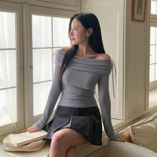 [셀럽하우스]소개팅 YTTX6493 데일리 이쁜 여리여리 깔끔한 오프 숄더 니트