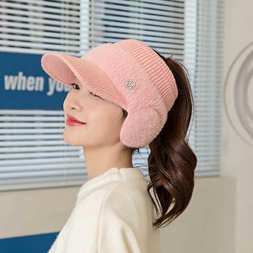 Hey 니트 썬캡 귀마개 모자 선바이저 골프 겨울 귀도리 털모자