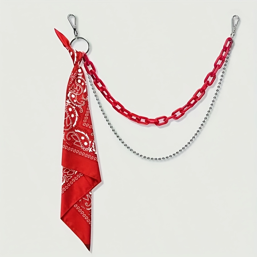TEMU 투피스 세트 힙합 바지 액세서리 체인 | 아크릴 멀티 레이어 체인 + 사각 스카프 스카프 | 인스 스타일 | 캐주얼 | 힙합 스타일 | 스트리트 댄스 의류 액세서리 체인