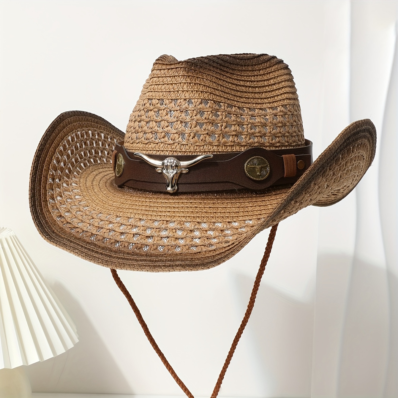 TEMU 서부 카니발 스타일 클래식 요소 디자인 선 햇, 바람 방지용 홀로 그라데이션 와이드 브림과 턱 스트랩 포함 캠핑 아웃도어