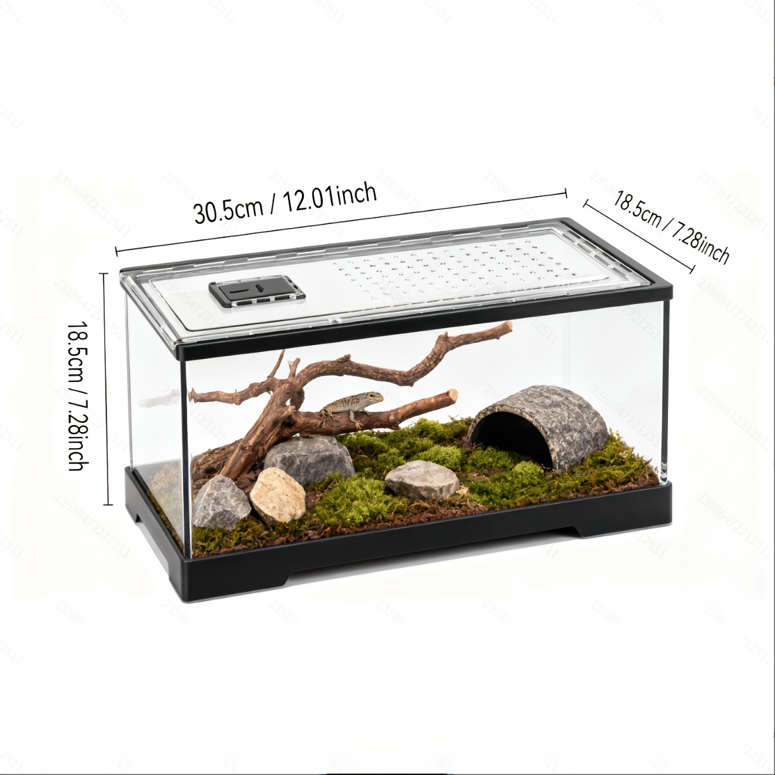 TEMU 아크릴 재질 파충류 케이지 수족관 360° 투명 편리한 상호 작용 및 풍경, 통풍구 도어 탈출 방지, 도마뱀 햄스터 개미뱀 뿔벌레 곤충 게 거북이 개구리 뱀 등 기타 동물을 위한 적합