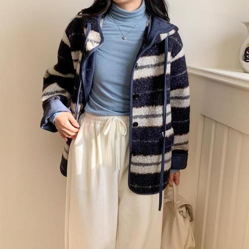 [다잇템]여자 후디 FUR 줄무늬 박시핏 덤블 자켓 (29416646A)