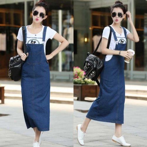 여성 루즈핏 롱 데님 멜빵원피스 캐주얼 오버롤룩