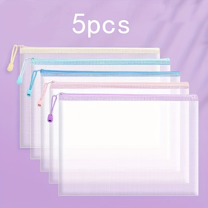 TEMU 5개 또는 10개 A4 지퍼 투명 파일 가방, 대용량 방수 보관 파우치, 서류·책·시험지 등 수납 가능, 사무용품 및 학용품에 적합
