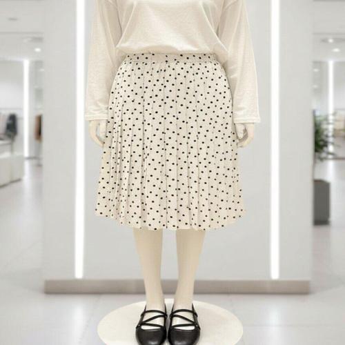 [신상오픈런]여성 플리츠 땡땡이 미디 스커트