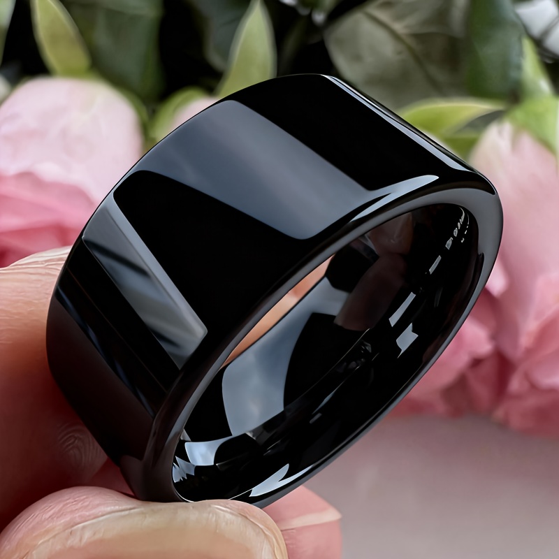 TEMU 세련된 12mm 폭 블랙 316L 스테인리스 스틸 커플링 - 약혼 및 결혼에 완벽, 이상적인 발렌타인데이 선물