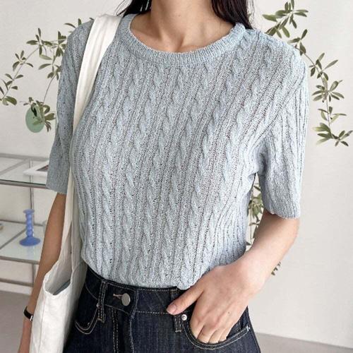 [셀럽하우스]베이직 SXGU3155 디자인 여성 케이블 짜임 반팔 니트