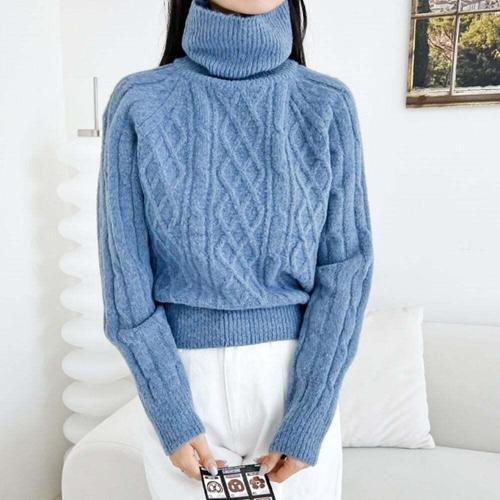 [셀럽하우스]클래식 EYFG3208 디자인 여자 램스 케이블 꽈배기 니트