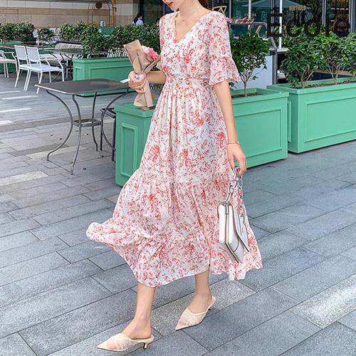 [다잇템]여자 모임룩 잔주름 펌킨 딥브이 미니원피스