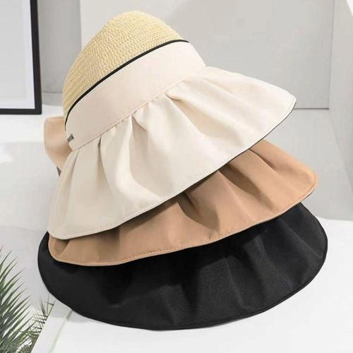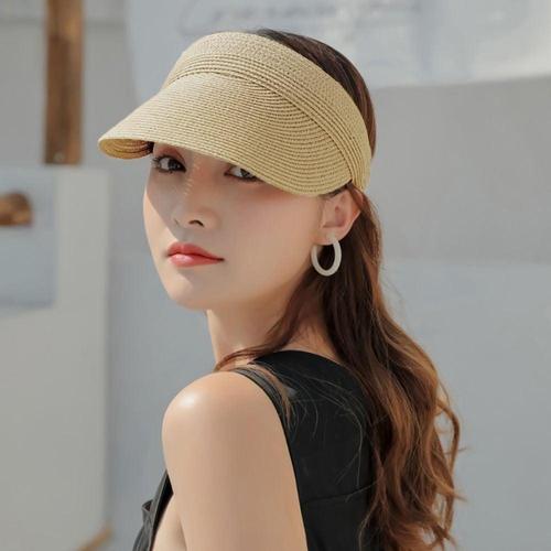 썬캡 여성여름모자 밀짚 돌돌이 와이어 햇빛가리개모자 벨크로리브던트썬캡