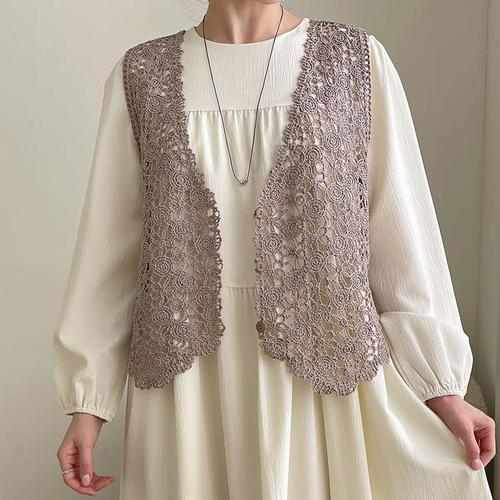 [다잇템]여자 펀칭 꽃무늬 휴양지룩 뜨개 니트조끼 (29199161A)