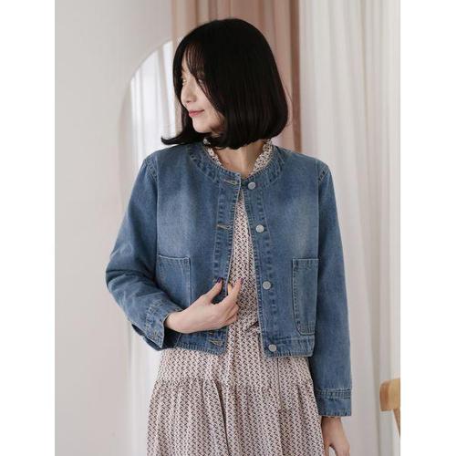 여성 라운드넥 노카라 데님 자켓 HH-E84 라운드넥데님자켓 노카라데님자켓 여자청자켓 라운드넥청자켓 여성