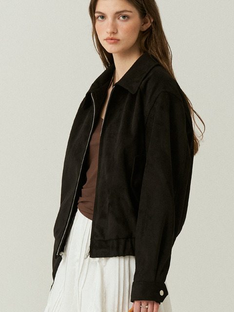 [도프셉] 비건레더 스웨이드 크롭 보머 자켓_블랙
