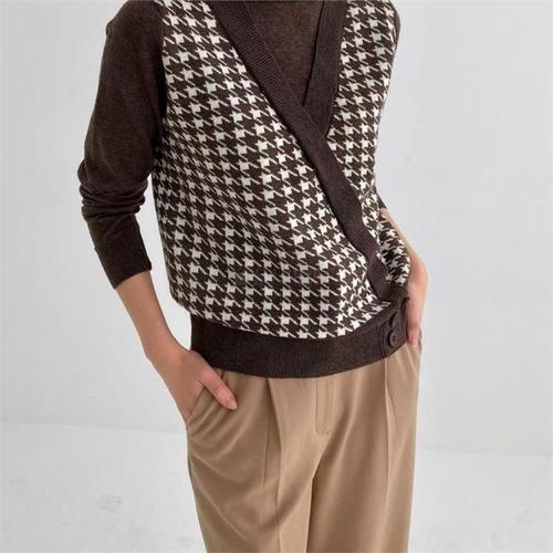 [다잇템]여성 하운드체크 랩 코디 하이넥 단추 티셔츠 (9435825A)