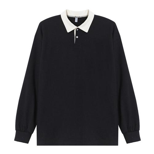 남자 오버핏 버튼 카라넥 럭비 티셔츠 AC-KAA-Q001-블랙