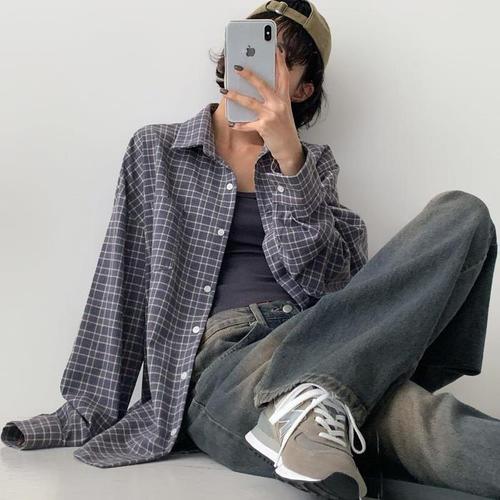[다잇템]여자 박시핏 주머니 박시 레드셔츠 격자 셔츠 (28678290A)