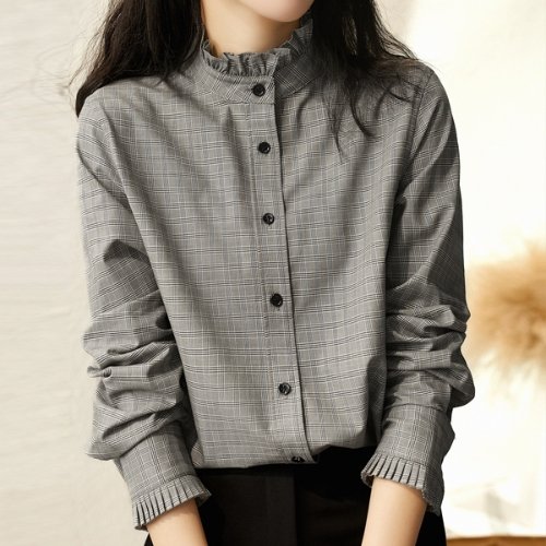 여성용 드레시 블라우스 심플하고 우아한 데일리 스타일리시 하이넥 레귤러 탑