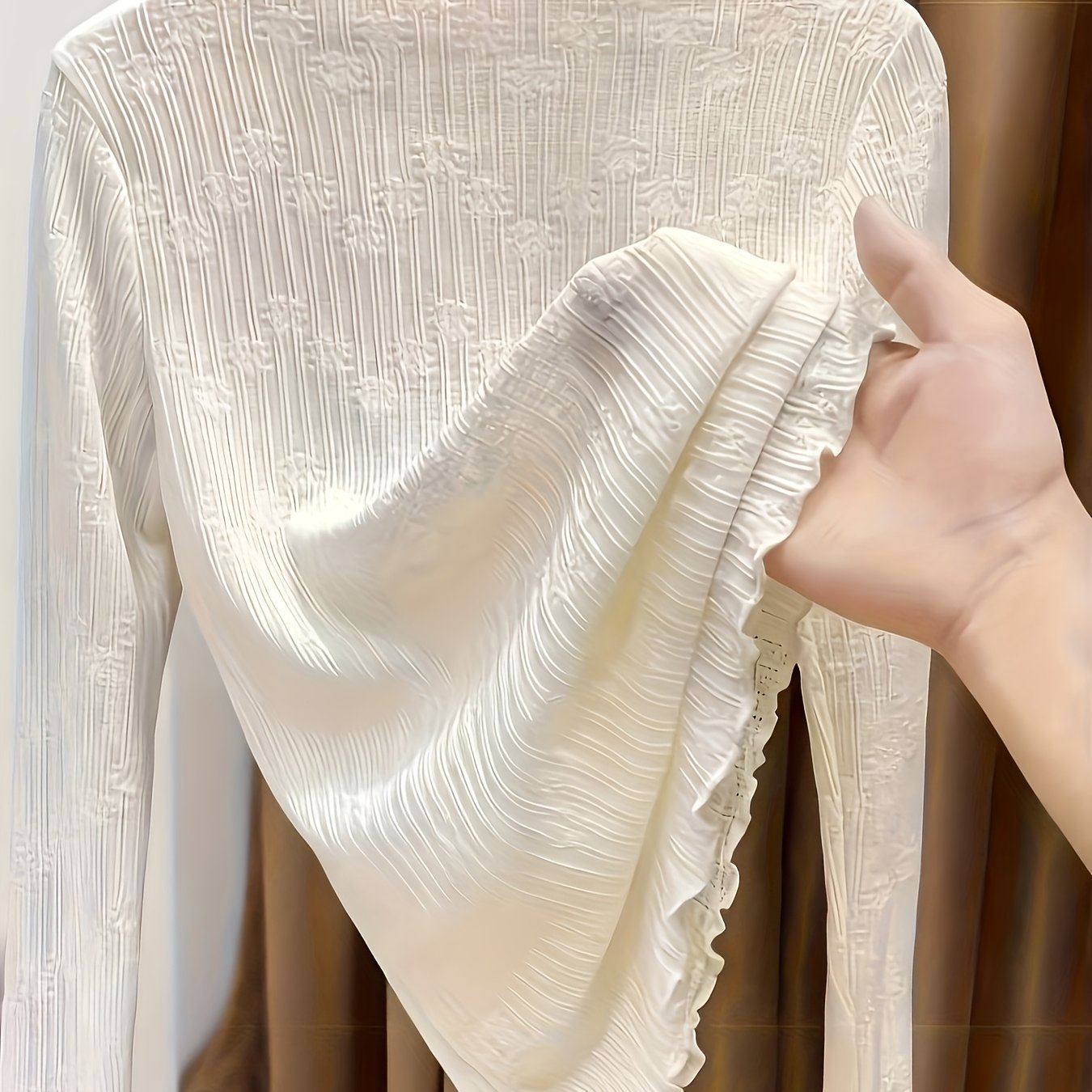 TEMU 여성용 우아한 하이넥 긴팔 블라우스 - 솔리드 컬러 캐주얼 셔츠, 반투명 사계절 세탁 가능 탑, 레이어링 또는 캐주얼 복장에 다용도, 허리 부분(신축성 없음)