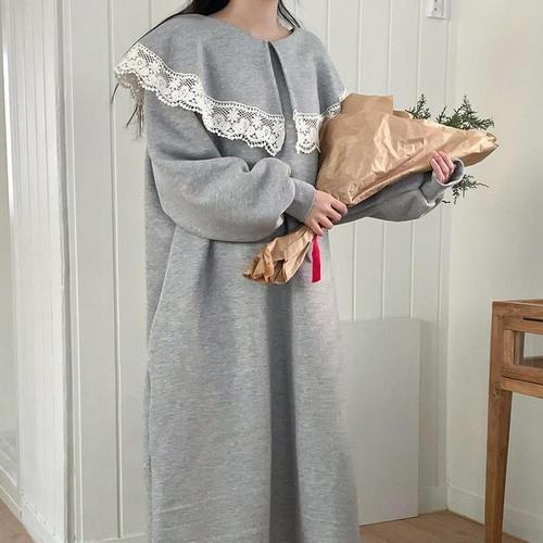 청순핏 데일리 기모 레이스 프릴 롱원피스