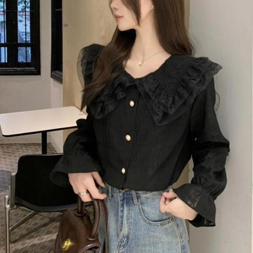 [다잇템]여자 공주풍 레이스 빅 카라 펀칭 블라우스 (10964644A)