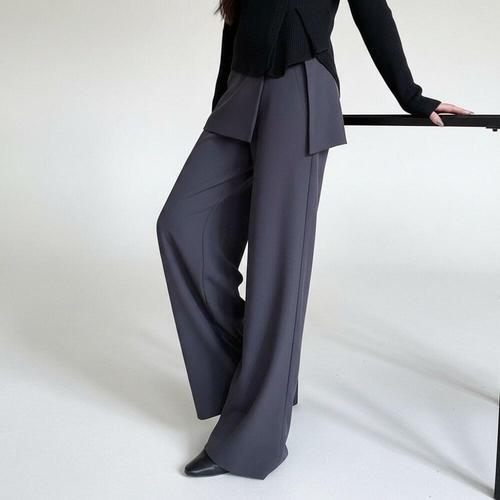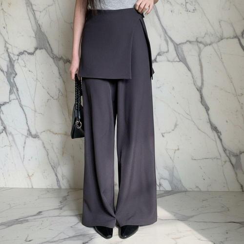[미라클세븐]여성 독특한 언발 랩 스커트 레이어드 와이드 롱 팬츠