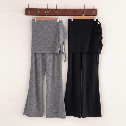 [미라클세븐]여성 레이어드 미니 랩스커트와 빅사이즈 부츠컷 바지 세트