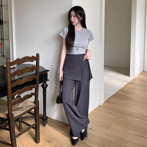 [미라클세븐]여성 언발란스 랩 스타일 레이어드 와이드 롱 팬츠 스커트